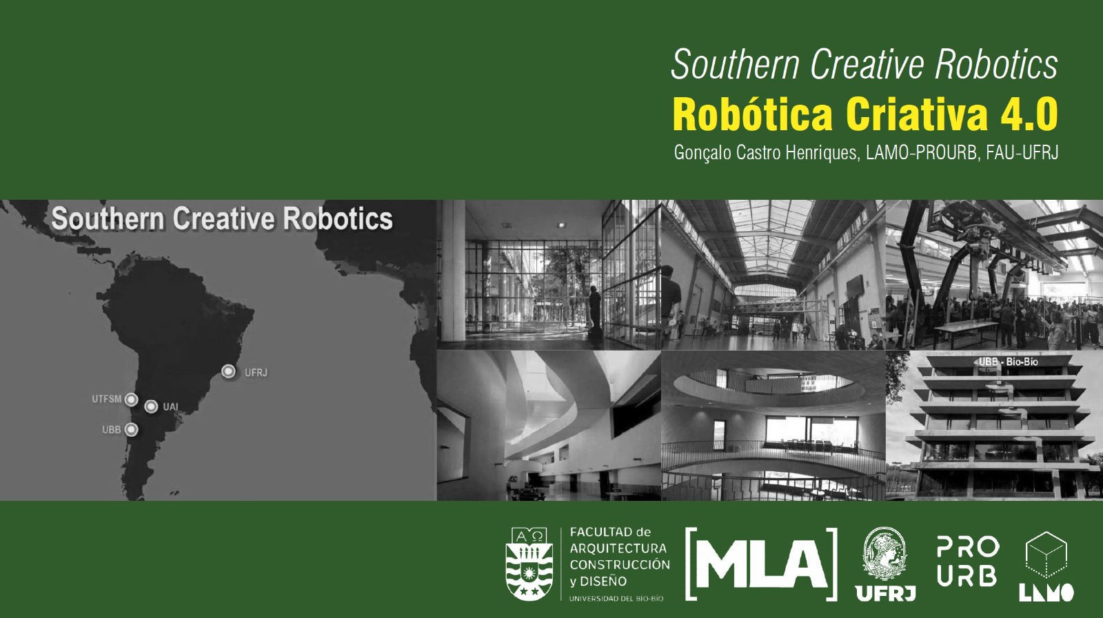 El Magíster Latinoamericano en Arquitectura [MLA] de la Facultad de Arquitectura, Construcción y Diseño de la Universidad del Bío-Bío invita a la actividad académica “Robótica Creativa 4.0”, organizada en el marco de la red internacional Southern Creative Robotics.