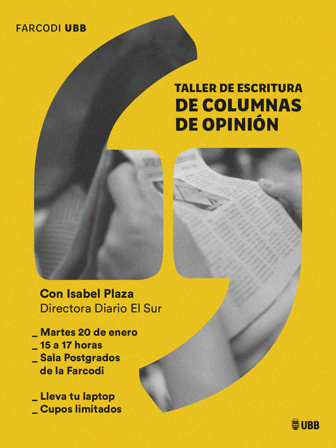 La Facultad de Arquitectura, Construcción y Diseño (FARCODI UBB) invita a participar del Taller de Escritura de Columnas de Opinión, una instancia formativa orientada a fortalecer las capacidades de análisis crítico, argumentación y escritura en el ámbito del debate público y los medios de comunicación.