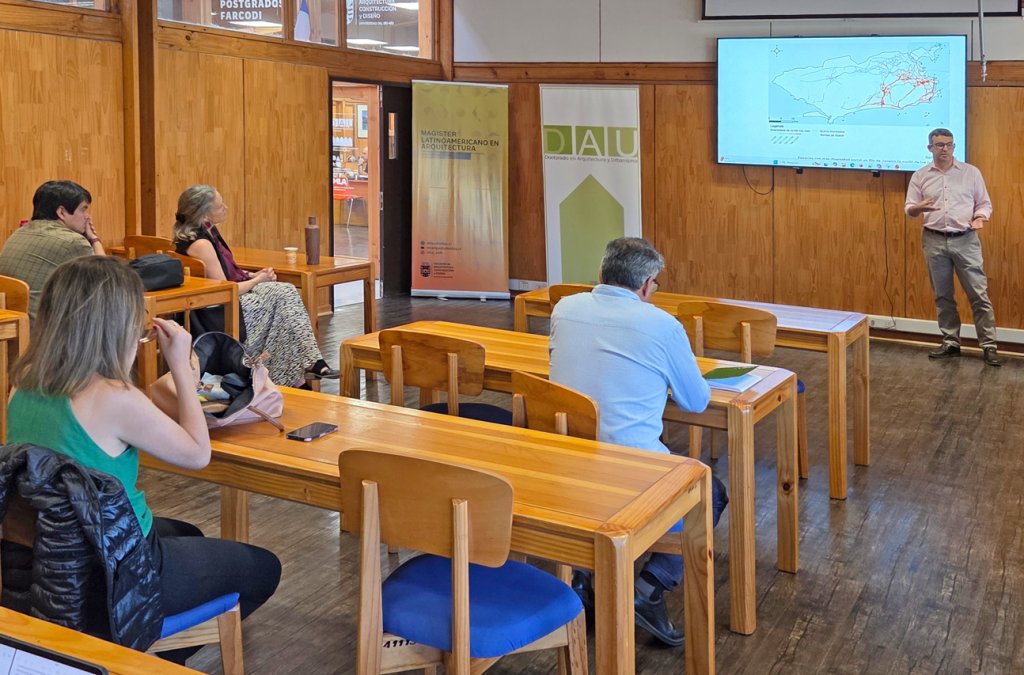 Entre los hitos se incluyó la charla del Dr. Rodrigo Cury de la Universidade Federal do Rio de Janiero (UFRJ) de Brasil, titulada: “Arquitecturas fantasmas: interacciones digitales con la historia de la ciudad”, que abordó nuevas miradas sobre la relación entre memoria urbana, tecnología y representación arquitectónica. Asimismo, la Dra. María Trebilcock, exdirectora de DAU y académica del Departamento de Diseño y Teoría de la Arquitectura, presentó la ponencia: “Investigar para un mejor hábitat humano. Confort, bienestar y el sentido de la formación doctoral”, enfocada en la investigación aplicada al bienestar y la calidad de vida en el entorno construido. A su vez, el Dr. Luis Oreggioni, de la Universidad de la República de Uruguay (Udelar) dictó: “Fundido a blanco: sobre arquitectura y agencia”, reflexión centrada en el rol de la arquitectura y su capacidad de incidencia en los procesos sociales y territoriales.
