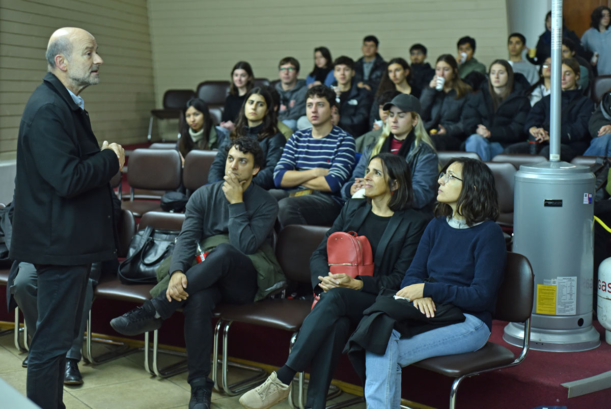 Dr. Sergio Baeriswyl Rada expone en el marco de la visita de delegación de la Escuela de Arquitectura de la PUC. Fotografía de Manuel Morales Requena.