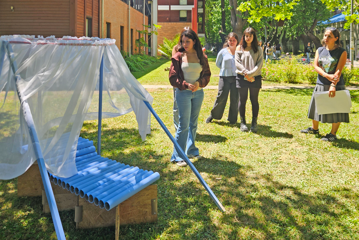 La muestra constituyó el cierre del trabajo semestral, donde el estudiantado exploró diversos enfoques formativos: observación del reino animal y vegetal, ejercicios de croquis, análisis de estructuras básicas y aproximaciones experimentales a los elementos fundamentos de la disciplina. Este proceso culminó con el desafío de construir una silla utilizando materiales accesibles y aplicando fundamentos arquitectónicos y criterios de diseño. En total, 45 estudiantes participaron en el desarrollo de los proyectos, en su mayoría de primer año.
