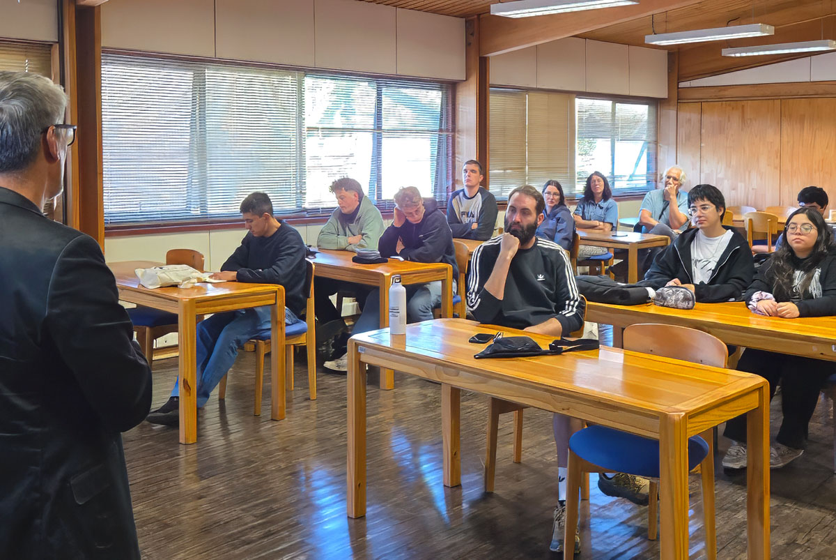 Una parte del programa que se llevó a cabo en dependencias de nuestra casa de estudios, que incluyó charlas del cuerpo docente y un workshop práctico, instancia en que el estudiantado fabricó cerchas de madera a escala real y posteriormente realizaron ensayos estructurales en laboratorio para observar su comportamiento, integrando conocimientos teóricos con experiencia aplicada.