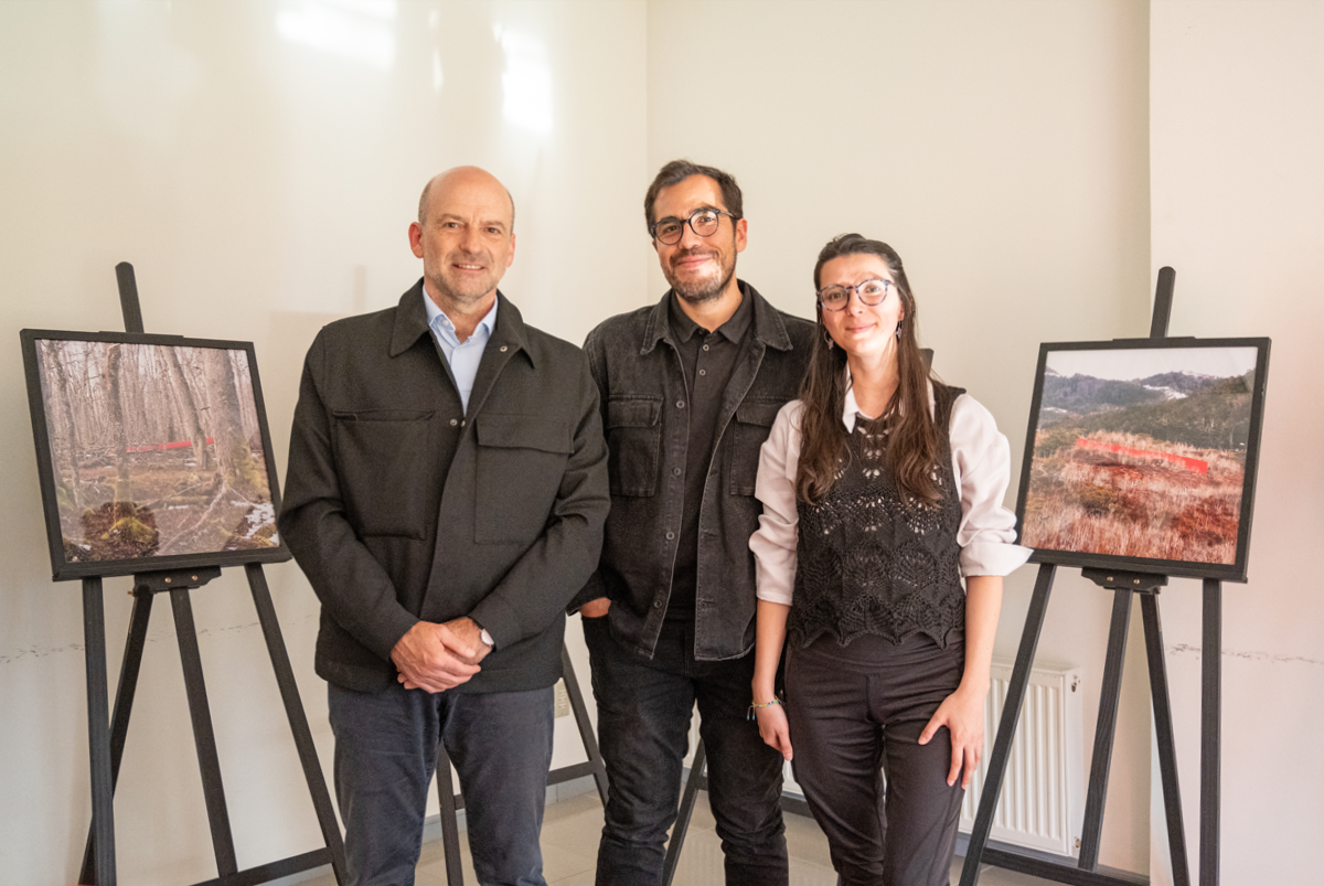 El Dr. Sergio Baeriswyl, académico del Departamento Planificación y Diseño Urbano y la oficina penquista Azócar Catrón, integrada por los académicos del departamento de Diseño y Teoría de la Arquitectura de la Farcodi UBB , Carolina Catrón y Ricardo Azócar. Integrantes del proyecto Aproximación a un imaginario espacial Selk´nam”. Fotografía cedida por el Dr. Sergio Baeriswyl.