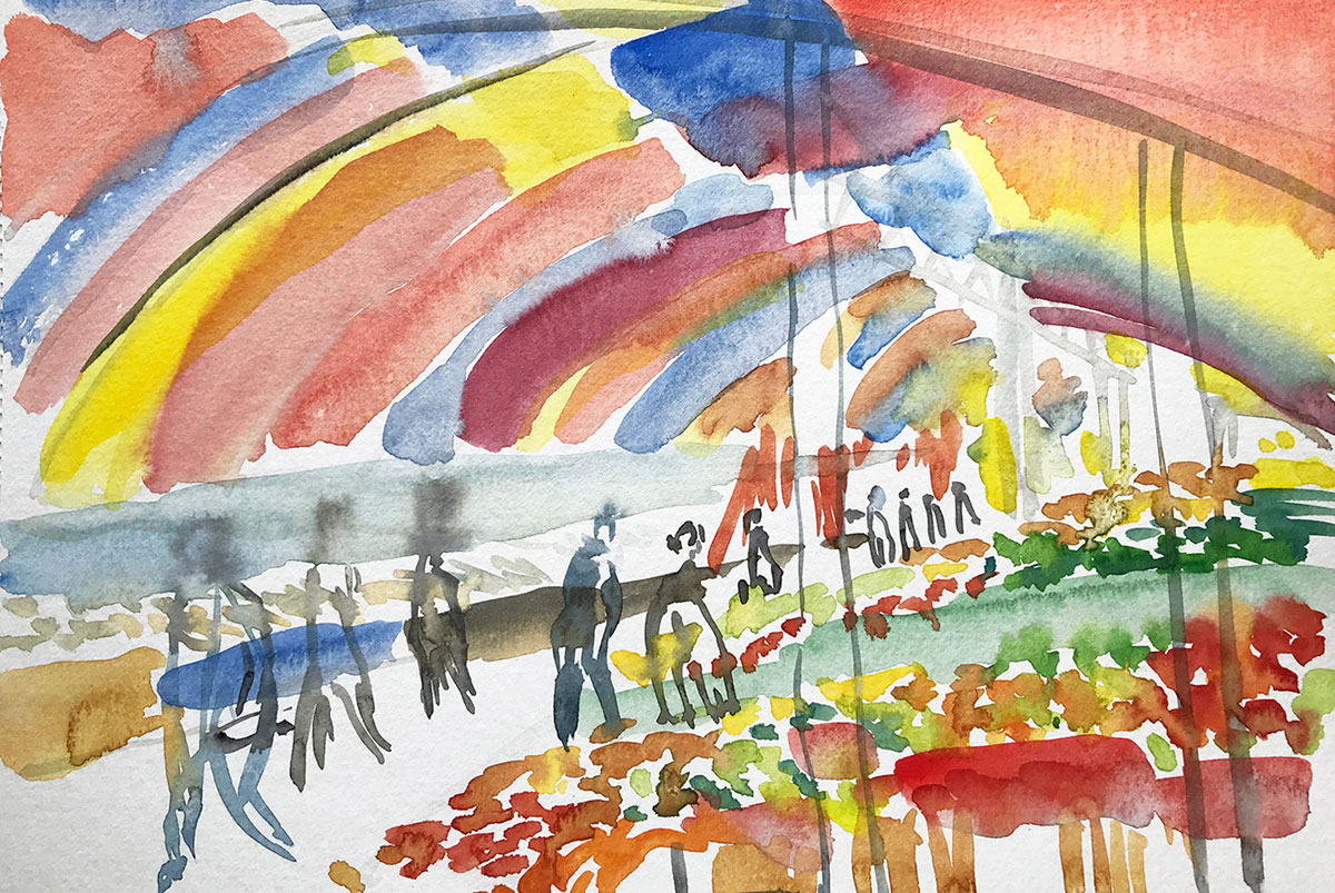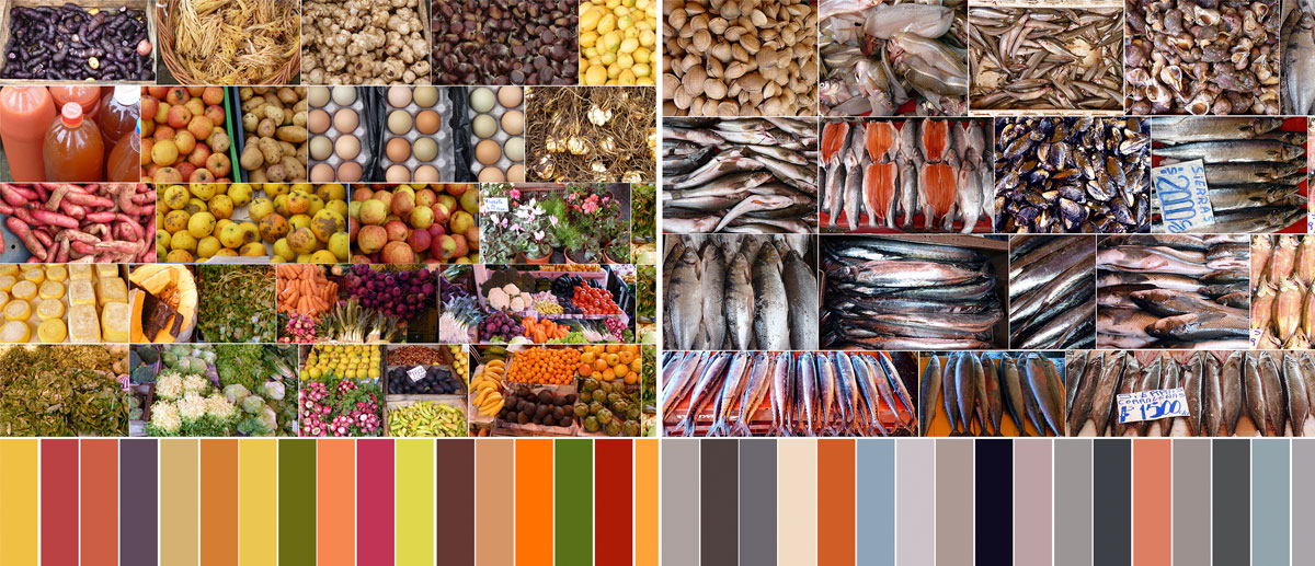 Atmósfera cromática de la feria fluvial de Valdivia. Fuente fotografía y collage de Mg. Elisa Cordero Jahr.