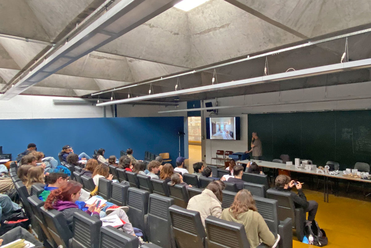 Durante la jornada, el Dr. Muñoz compartió con docentes y estudiantes de la FAUUSP, propiciando un espacio de intercambio académico en torno a los procesos creativos y metodológicos de la disciplina. En su exposición, destacó la importancia de comprender la arquitectura como un campo de pensamiento crítico y sensible, capaz de integrar dimensiones culturales, simbólicas y materiales.
