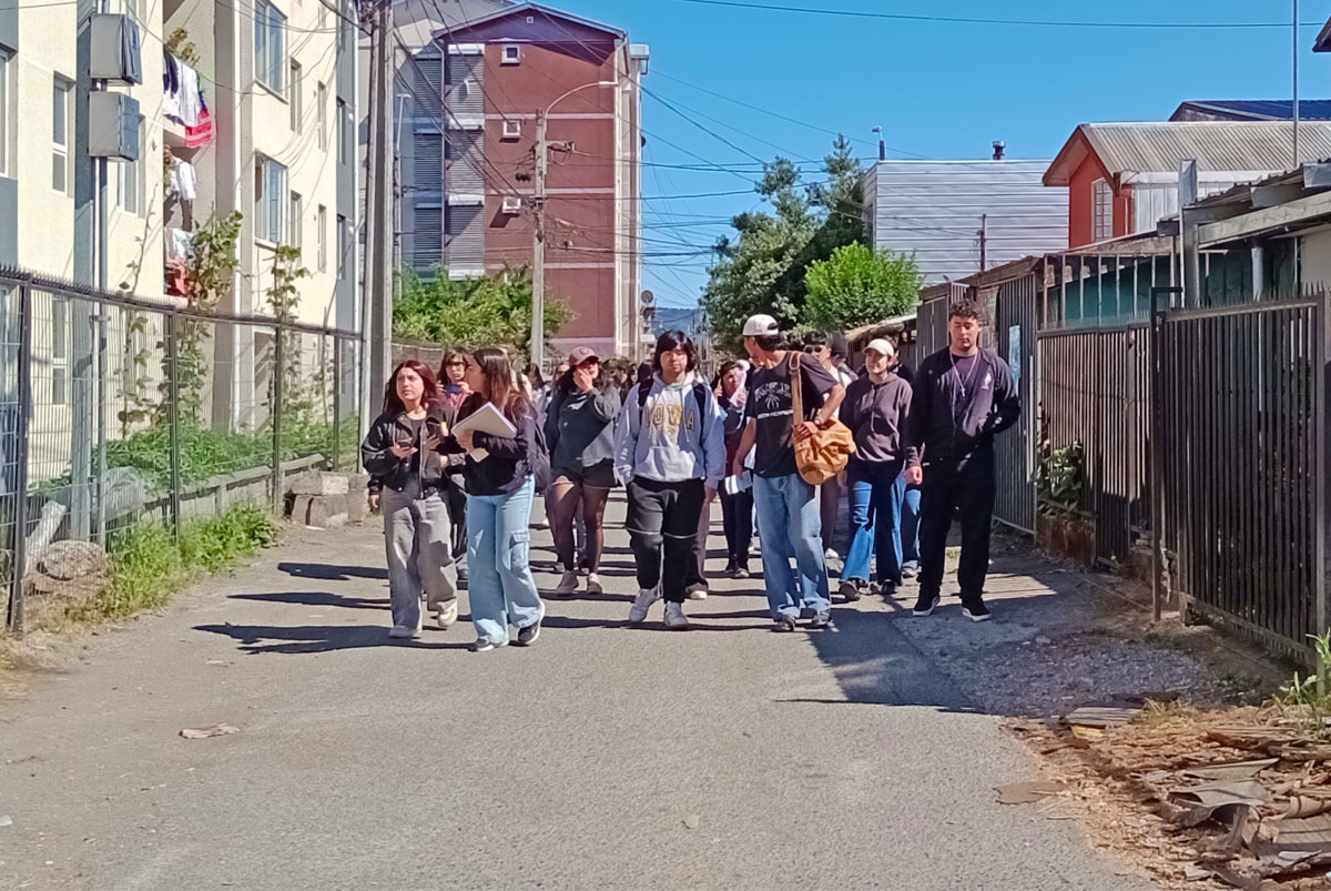 Durante noviembre se realizaron las primeras acciones del proyecto junto a las organizaciones colaboradoras, el Comité de Allegados Última Esperanza y la Corporación MED. El miércoles 12 de noviembre se llevó a cabo una caminata exploratoria en el barrio Villa Futuro junto a estudiantes del curso Urbanismo I de la Escuela de Arquitectura UBB, dirigido por la Dra. Stella Schroeder. En esta instancia, las dirigentas del comité, Daniela Correa y Bárbara Orrego, compartieron con el estudiantado su experiencia, desafíos y logros tras más de 15 años de trabajo comunitario en la búsqueda de una vivienda digna para las familias del sector. La actividad permitió comprender directamente la realidad territorial y valorar la organización que ha marcado un proceso sostenido de lucha y gestión comunitaria.